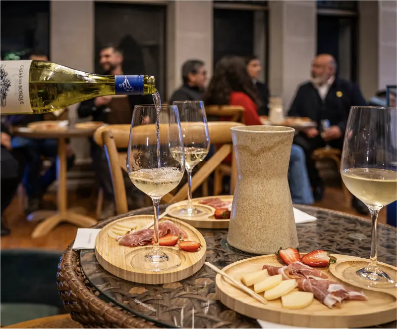 Disfruta de un exquisito cocktail en Salón Tudor, acompañado de una degustación de vinos Casas del Bosque.