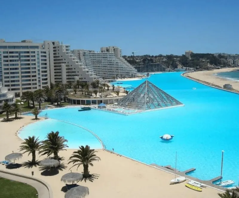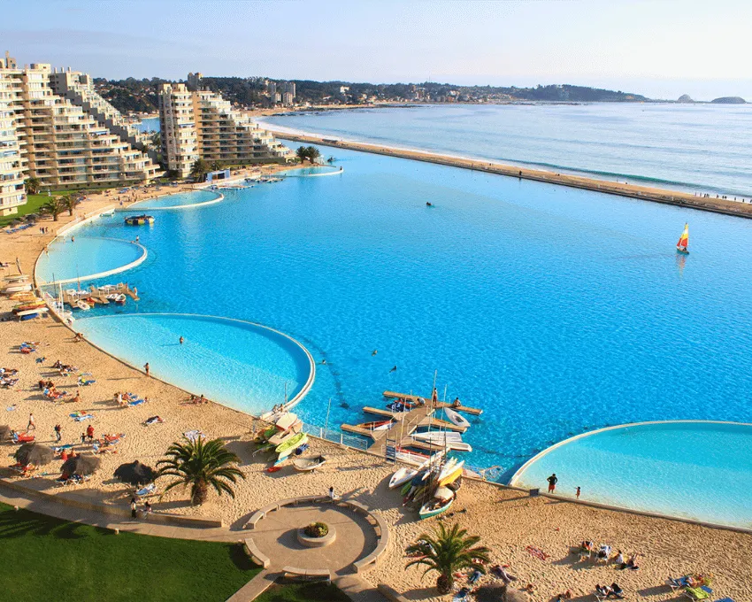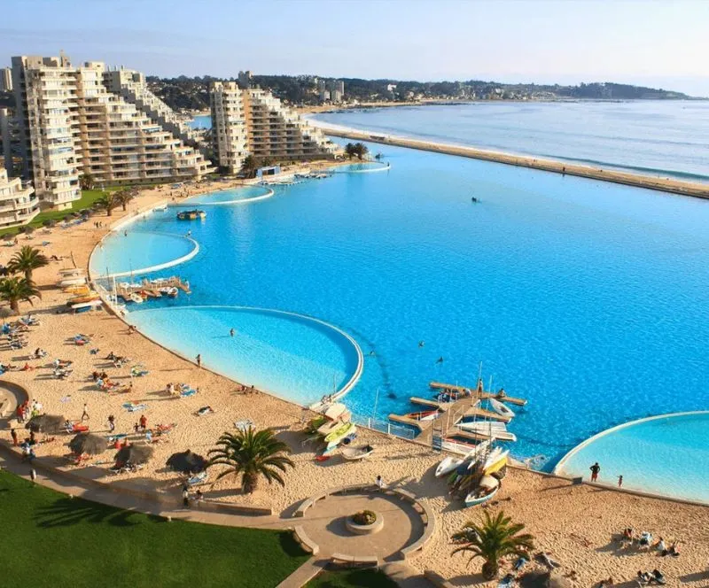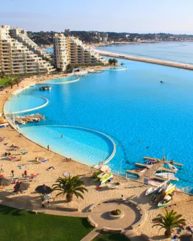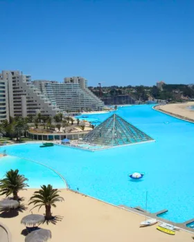 Continuaremos hacia la costa del Océano Pacifico hasta Algarrobo, uno de los balnearios más tradicionales de Chile, donde se puede recorrer el borde costero, el Club de Yates, más conocido como el Yachting y sus principales atractivos. Llegaremos a San Alfonso del Mar, famoso por tener el récord de la piscina más grande del mundo y donde podrás disfrutar de una espectacular vista y tiempo para almorzar por tu cuenta en su Restaurant «Peces Gordos”, reconocido por su variedad de pescados y mariscos de la costa chilena.