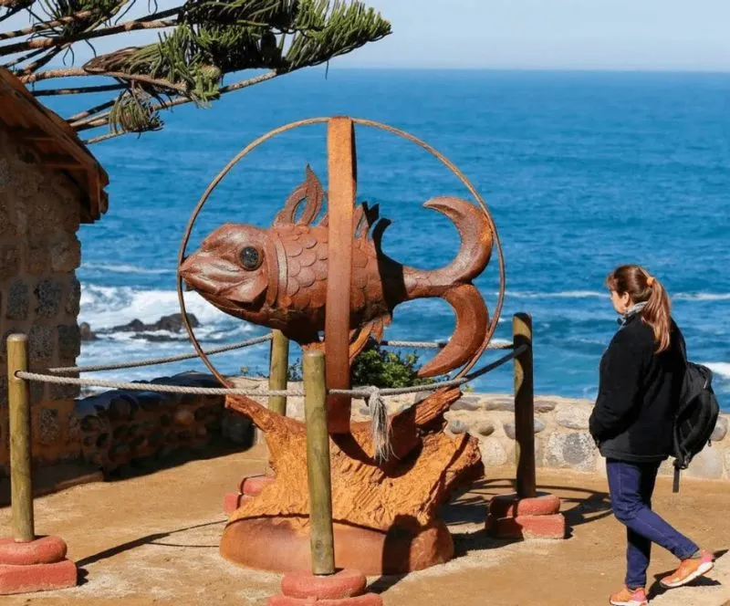 Luego viajaremos hacia Isla Negra, localidad de la costa central de Chile, con una hermosa y tranquila playa. Además, en este lugar está la Casa Museo Isla Negra, donde el reconocido poeta chileno, Pablo Neruda, vivió sus últimos años de vida. Aquí se conservan importantes colecciones, principalmente vinculadas al mar, como réplicas de veleros, barcos dentro de botellas, caracolas marinas y más.