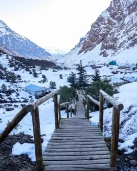 A medida que subimos podrás ir viendo más nieve en el camino, rodeado de ríos y montañas. Finalmente visitaremos El Morado Lodge & Spa, lugar donde tendremos nuestro almuerzo, para luego disfrutar de sus piscinas en un entorno rodeado de naturaleza y la increíble Cordillera de Los Andes Nevada. Tiempo para disfrutar la nieve, el aire puro y las vistas panorámicas.