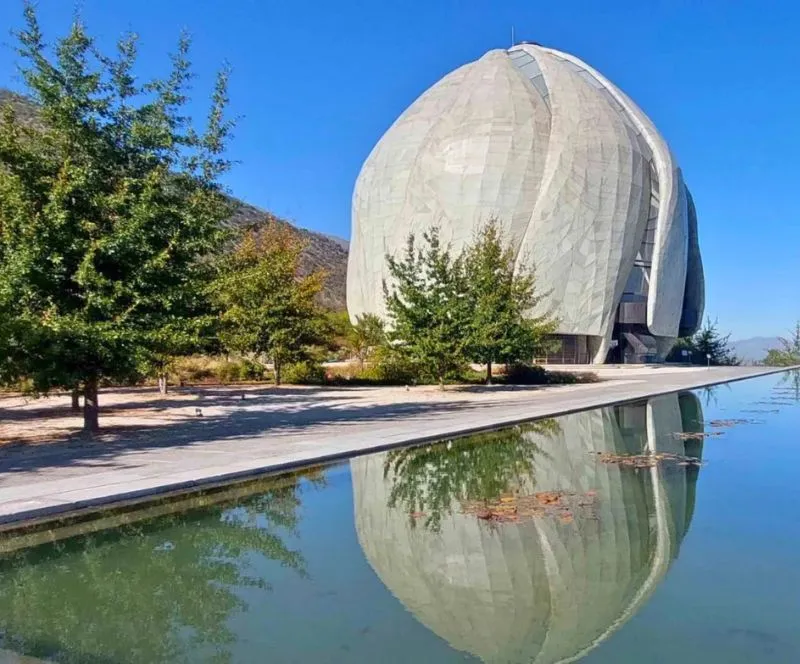 Primera Casa de Adoración Baha´i de Sudamérica, destaca por su arquitectura y vista panorámica.
